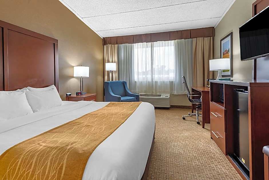 This room has a microwave, refrigerator, coffee machine, and work desk.